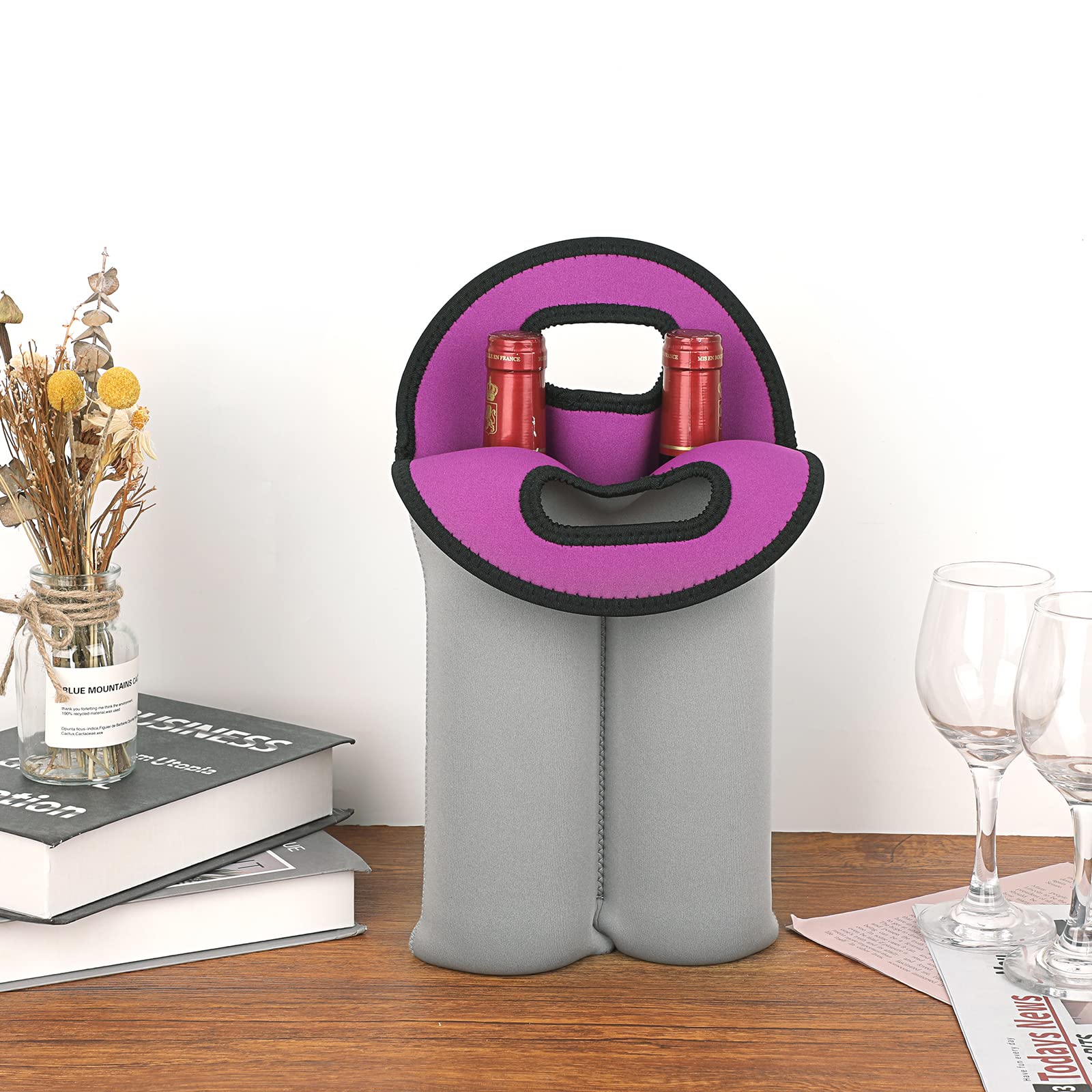 - Dual-Bottle Protection Design: Smartly designed with a built-in sewed partition that securely holds two bottles simultaneously while preventing them from knocking against each other during transport. Prevent collision damage and securely fix the bottles’ position.